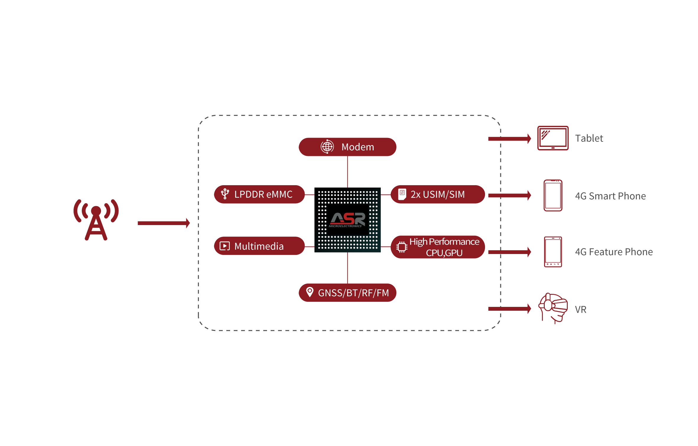 ASR has established a complete layout of multi-mode and full standard cellular baseband products, covering a full range of products such as Cat.1, Cat.4, Cat.6, and 5G, with complete categories and strong competitiveness. ASR's cellular baseband products are widely used in the IoT, smartphone, and smart module markets, and can meet the needs of various communication terminals. At present, 4G cellular baseband products have achieved continuous mass production and shipment worldwide, and 5G cellular baseband products are also steadily being introduced.
